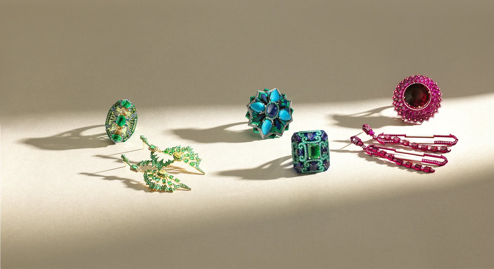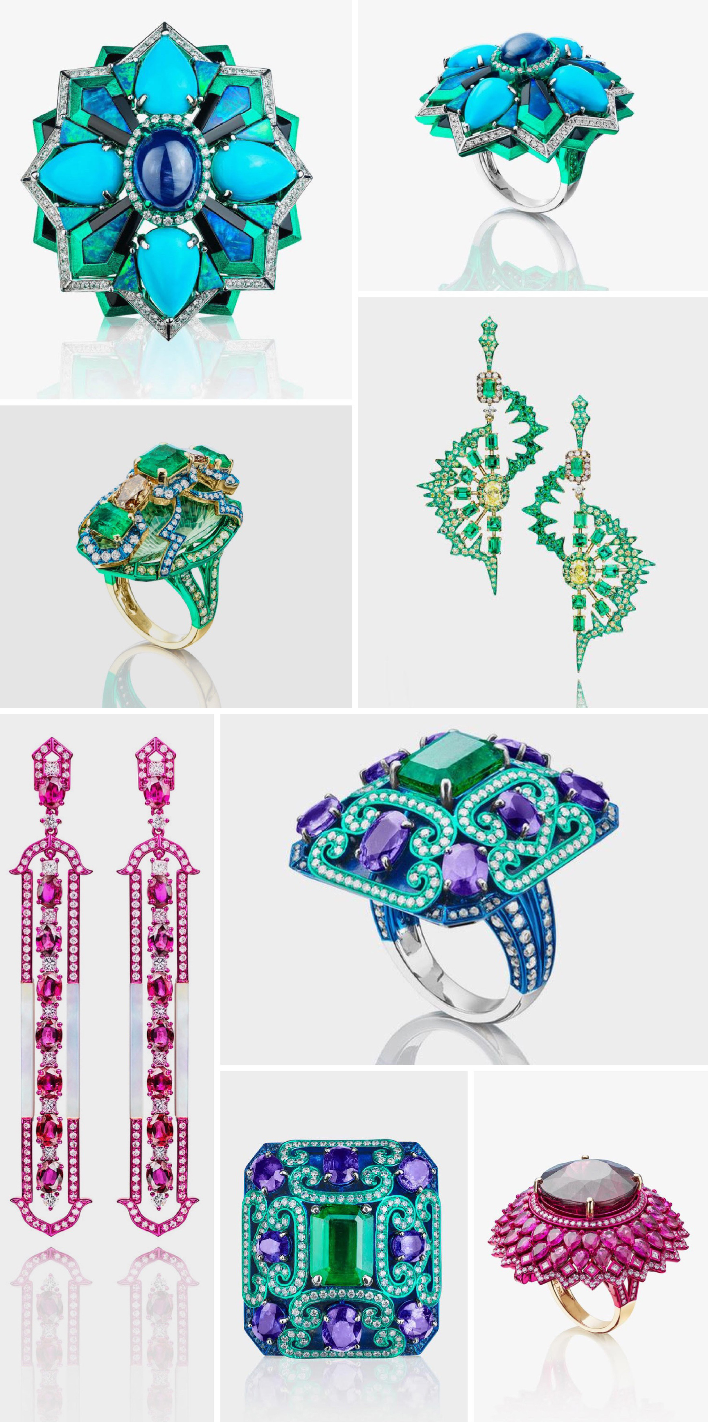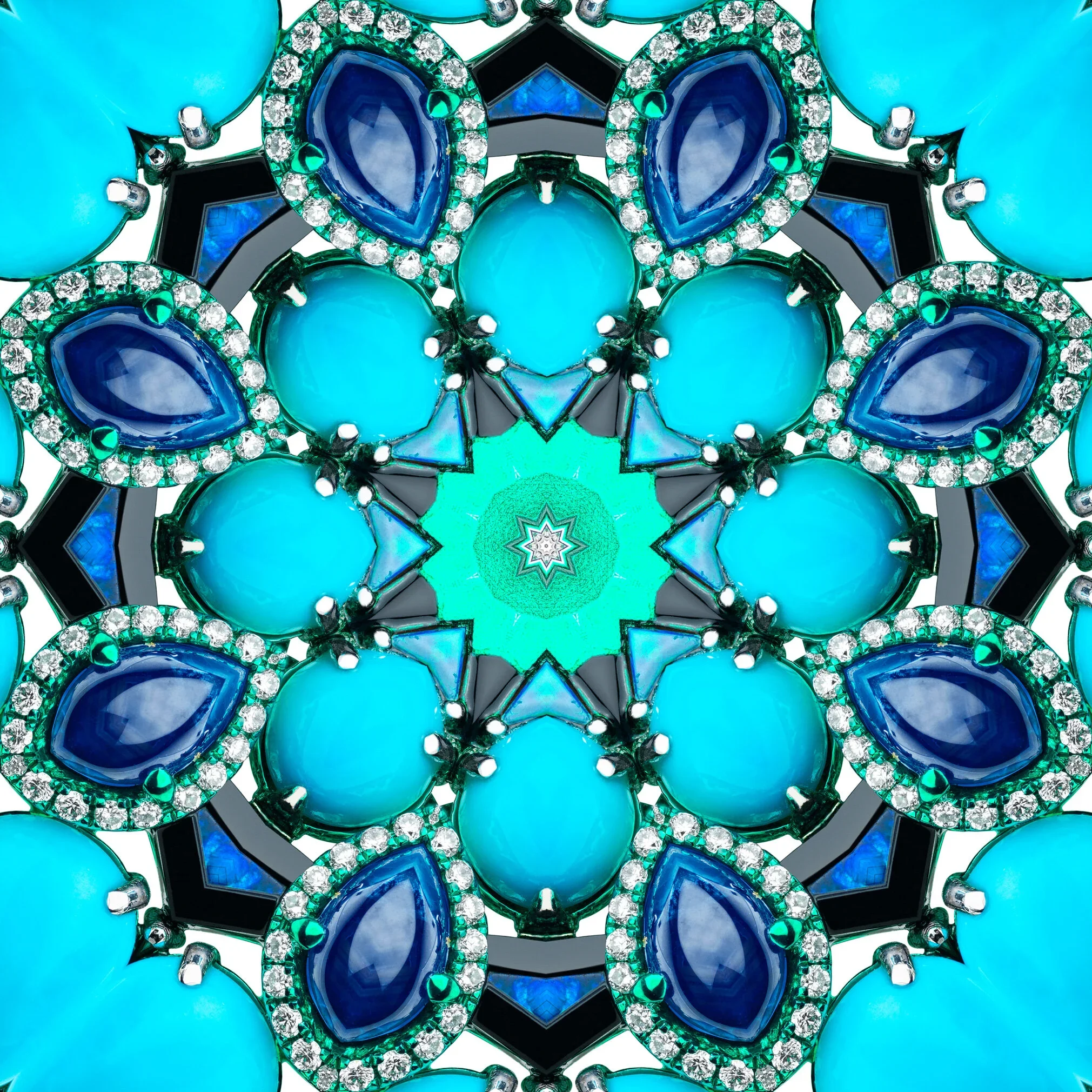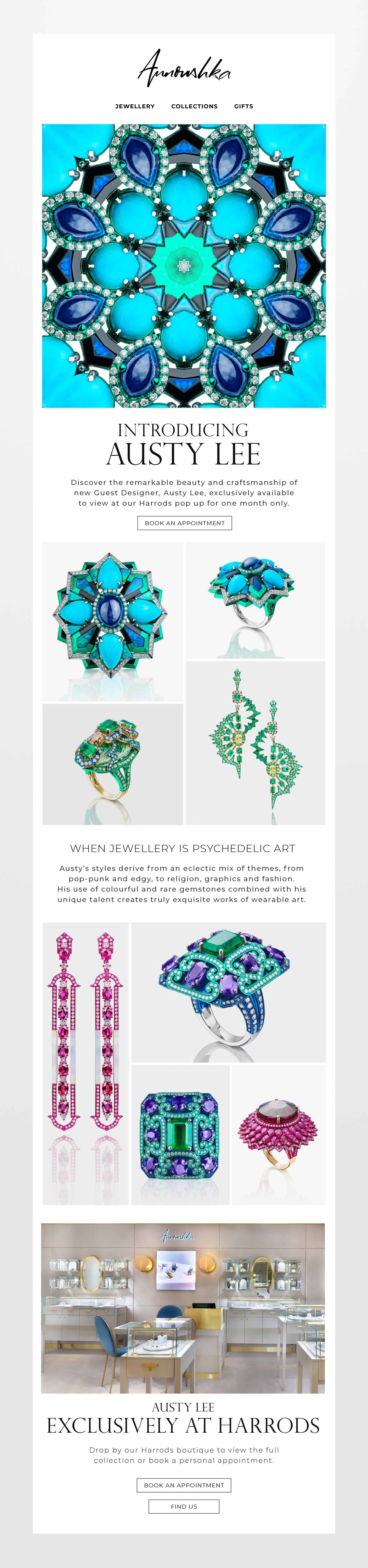For Austy Lee’s pop-up at Harrods, I developed a visual concept that translated the intensity of his jewellery into an immersive kaleidoscopic world. Using close-up details of the pieces, I created repeating compositions that amplified colour, symmetry, and scale, echoing the jewellery’s psychedelic energy.